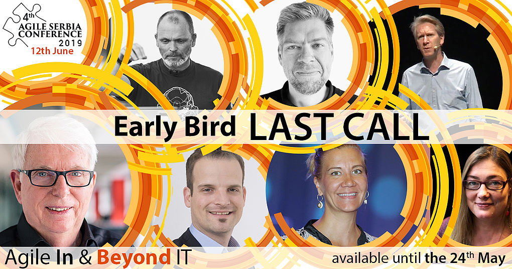 Prijave su u toku a broj mesta je ograničen, rezervišite svoje mesto na vreme. Sve informacije se nalaze na sajtu www.agile-serbia.rs/conference/june-2019/. Agile Serbia tim vam želi dobrodošlicu!